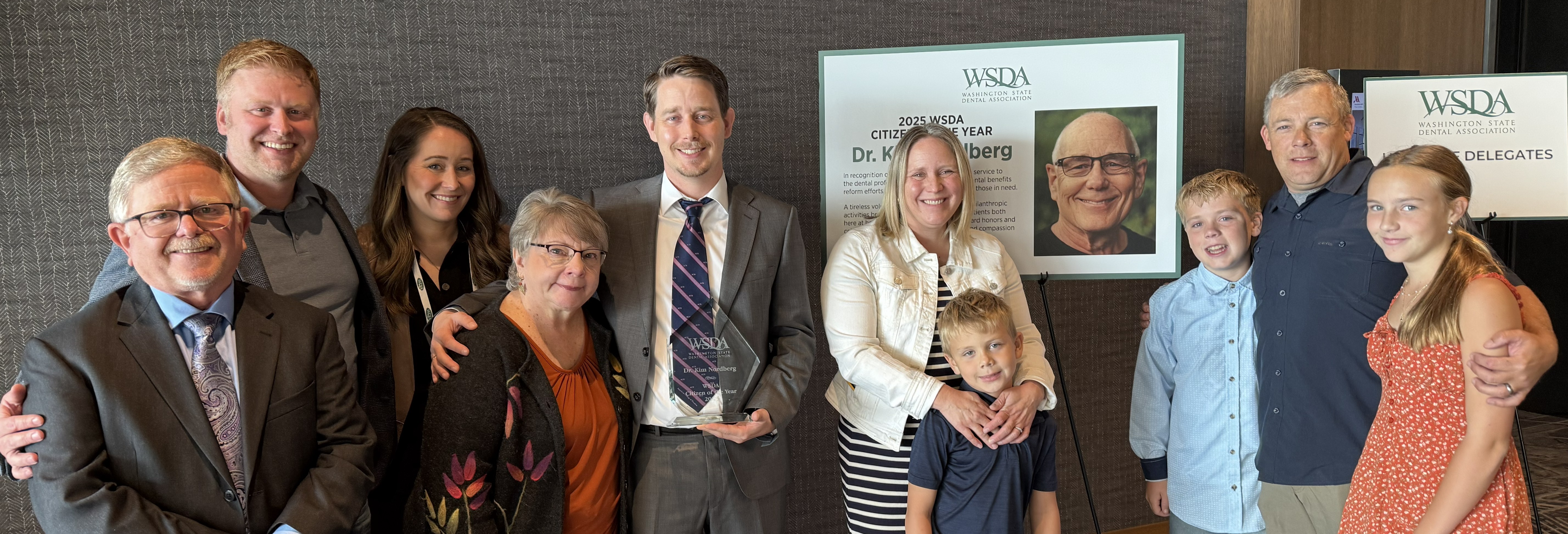 Dr. Nordberg and his wife, Bette, were tragically killed in a car accident in October 2024 — a heartbreaking loss for their family, friends, community, and the profession Kim loved. Several members of Dr. Nordberg’s family accepted the award on his behalf during the WSDA House of Delegates meeting in September.